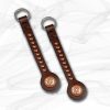 Copper Sunrise Key Fob, this is not your normal key fob. This versatile fob can be used for Keys, Hoof Pick, Bag Zipper-Pull, Gate openers, and many other small items that are always being lost or misplaced. Made from the same Premium Chocolate Brown leather as our belts, this Fob has an Antiqued copper flower, copper spots and includes a 1″ key ring.
