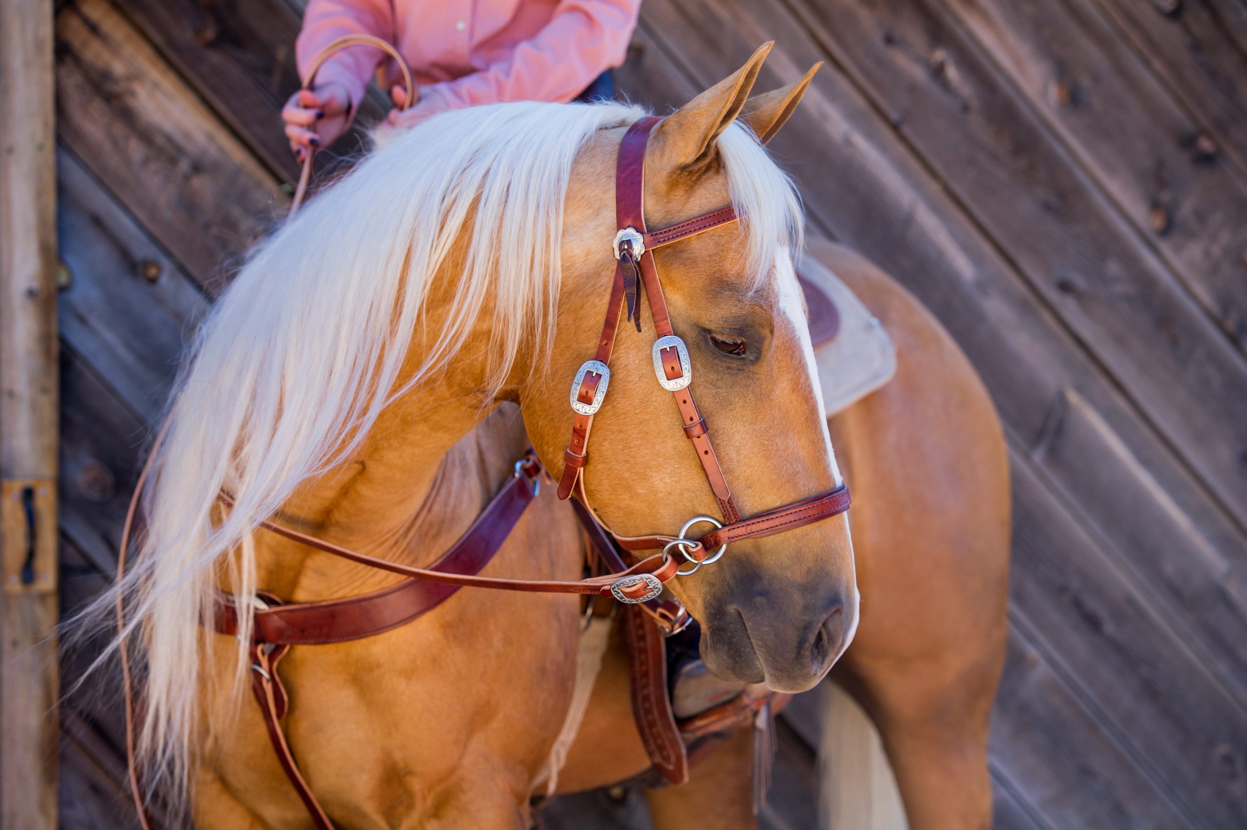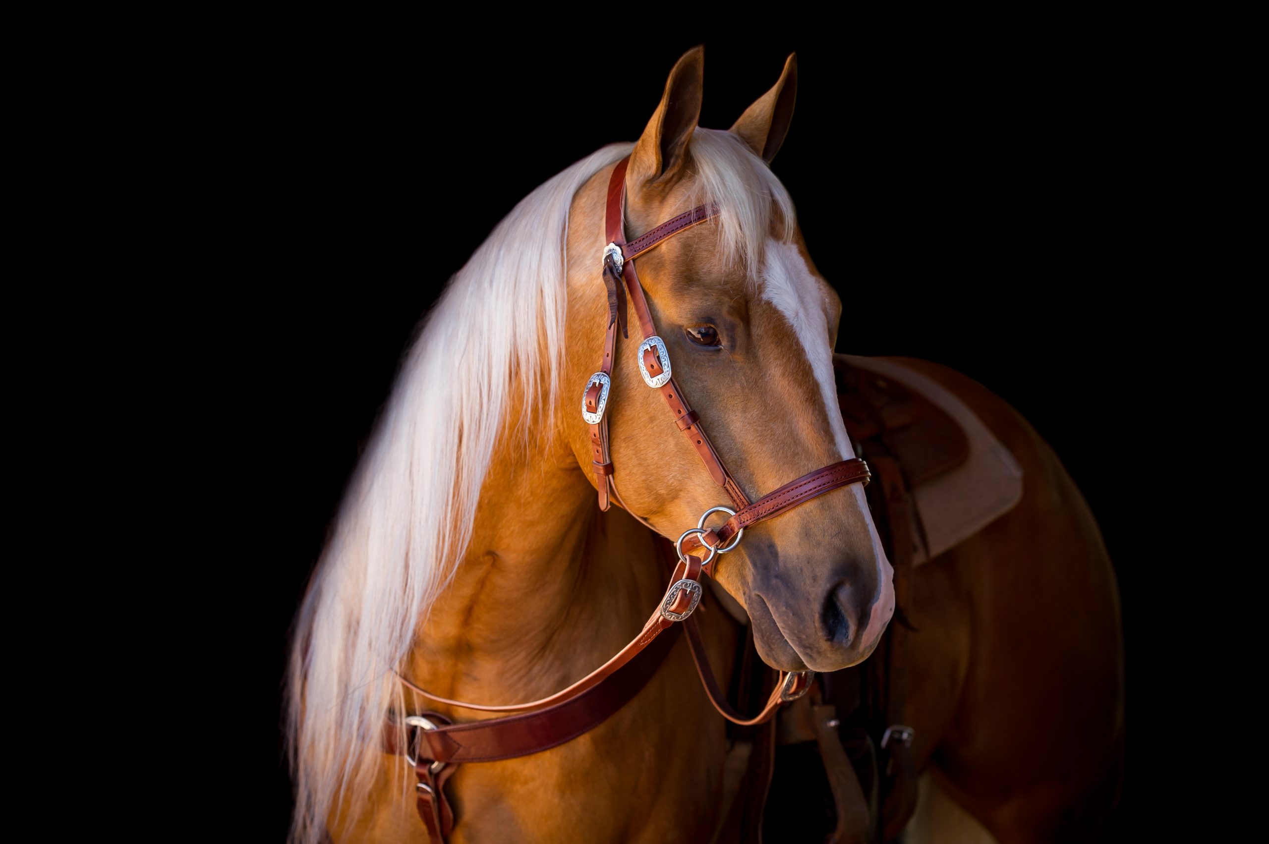 Noseband: Measure 1 1/2 ” to 2″ up from the corner of the horse’s mouth. From that point, measure the circumference of the horse’s nose.