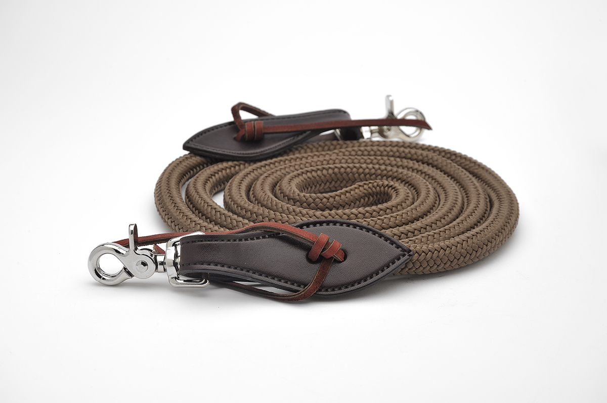 Double-Braided reins are 7′ long and 1/2” thick, one continuous rein made in the USA out of high quality materials. Finished out with leather slobber straps and snaps on each end for easy on and off. This double braided rein is soft and durable, great for Western or English riding.