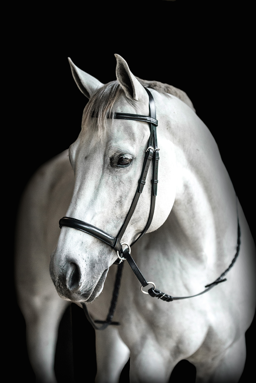Noseband: Measure 1 1/2 ” to 2″ up from the corner of the horse’s mouth. From that point, measure the circumference of the horse’s nose.